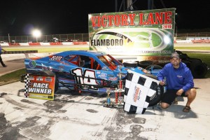 At Flamboro Speedway’s Frostoberfest on Saturday October 1, he showed speed behind the wheel of his OSCAAR Modified, winning the opening heat, followed by a fourth in the second qualifier. Starting sixth for the 40-lap feature, he’d break into the top-five on Lap 10. He continued making moves, climbing up to third at the halfway mark.